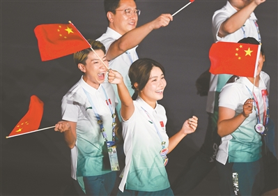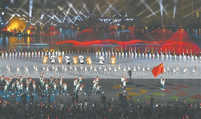 中國體育代表團入場。 (圖據(jù)新華社)
