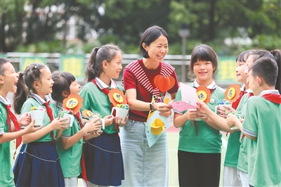 近期,四川省樂山市各學(xué)校開展了豐富多彩的教師節(jié)活動(dòng),同學(xué)們通過制作賀卡、彩泥畫像等方式,表達(dá)對(duì)老師的節(jié)日祝福。圖為9月8日,樂山市翡翠實(shí)驗(yàn)學(xué)校的學(xué)生將制作的彩泥多肉盆景和賀卡送給老師。李華時(shí) 攝