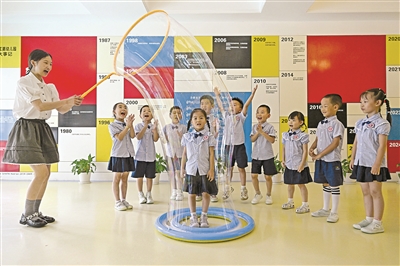 9月17日,安徽省合肥市廬陽(yáng)區(qū)長(zhǎng)江路幼兒園教育集團(tuán)總園開展“科普向未來”全國(guó)科普日主題活動(dòng)。通過體驗(yàn)趣味科普器材、觀看科學(xué)小實(shí)驗(yàn)等環(huán)節(jié)讓小朋友零距離感受科技帶來的樂趣和魅力。圖為小朋友正在體驗(yàn)科普設(shè)備,學(xué)習(xí)科技知識(shí)。 趙明 攝