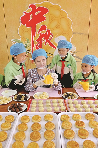中秋節(jié)臨近,山東省棗莊市市中區(qū)建設(shè)路小學(xué)開展“學(xué)做月餅 喜迎中秋”活動,學(xué)生們在老師的指導(dǎo)下制作月餅,喜迎中秋佳節(jié)。圖為9月28日,學(xué)生在學(xué)習(xí)制作月餅。孫中喆 攝