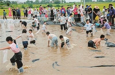 9月21日,安徽省含山縣環(huán)峰鎮(zhèn)陳沃村舉辦第三屆環(huán)峰鎮(zhèn)褒山和美鄉(xiāng)村豐收節(jié)?;顒蝇F(xiàn)場,50余名孩子分三輪參加“渾水摸魚”游戲,在泥塘中嬉笑追逐,感受豐收的喜悅,也增進了對傳統(tǒng)農(nóng)耕文化的了解。圖為孩子們在泥塘里面摸魚。歐宗濤 攝
