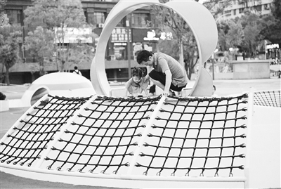 8月31日傍晚,咸寧市圖書館旁的綠地上,新添的爬網(wǎng)處已有孩子的身影。歡快的笑聲,白色天幕下奔跑的身影,與夕陽構(gòu)成一幅美麗畫面。