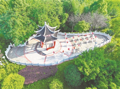 太極拳愛(ài)好者在重慶市梁平區(qū)正龍寺公園打太極拳健身。劉輝 攝