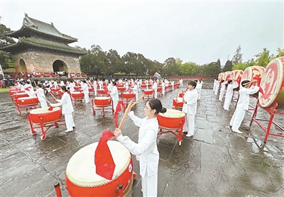 2025國(guó)際武當(dāng)太極文化節(jié)上表演“鼓聲迎賓·祈福中華國(guó)泰民安”節(jié)目。(資料圖)