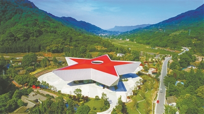 以紅色五角星形狀呈現(xiàn)的四川紅軍長(zhǎng)征數(shù)字展示館。