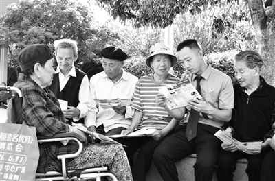 檢察官向身邊老年群體開(kāi)展普法宣傳。