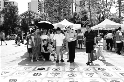市民在邛崍鳳求凰公園通過趣味游戲?qū)W習(xí)文明交通知識。