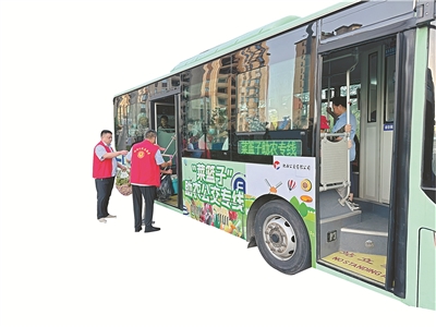 “扁擔(dān)公交”配備了專職志愿者,為菜農(nóng)提供貼心服務(wù)。(肥西縣委宣傳部供圖)