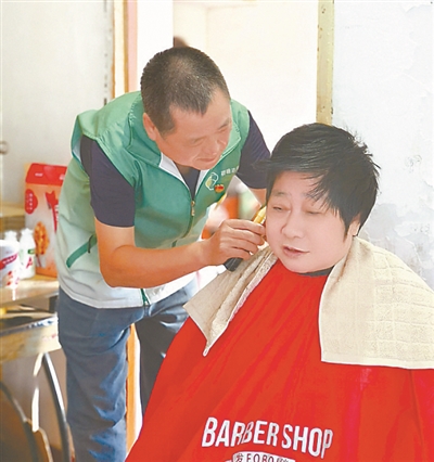 戴義勝上門為居民義剪。