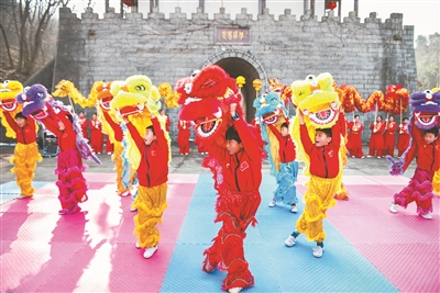 1月24日,安徽省含山縣昭關(guān)鎮(zhèn)伍相祠城墻前熱鬧非凡,當(dāng)?shù)匚湫g(shù)學(xué)校的孩子們帶來非遺舞獅表演。表演者們動(dòng)作矯健、姿態(tài)靈動(dòng),精彩的表演吸引市民駐足觀看。
