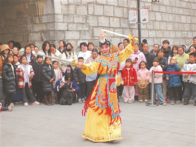 圖2為2月2日,貴州京劇院演員在貴陽市云巖區(qū)文昌閣廣場為社區(qū)群眾表演京劇《霸王別姬》。 熊洪全 攝