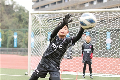 重慶各地的學生來到運動館、戶外運動場參加各類體育項目。圖為寒假中,沙坪壩區(qū)融匯沙坪壩小學的學生參加足球訓練。孫凱芳 攝