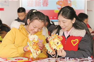 寒假期間,江蘇省海安市墩頭鎮(zhèn)開展寒假公益課堂愛心托管服務。孩子們在墩頭鎮(zhèn)新時代文明實踐站里接受志愿者輔導作業(yè),學習手工制作、安全知識、文藝表演等。圖為2月12日,在海安市墩頭鎮(zhèn)新時代文明實踐站,孩子們學習制作新年飾品。周強 攝