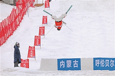 2月27日,2025—2026賽季全國自由式滑雪雪上技巧冠軍賽在內(nèi)蒙古呼倫貝爾扎蘭屯金龍山滑雪場開賽。圖為比賽現(xiàn)場。韓穎群 攝