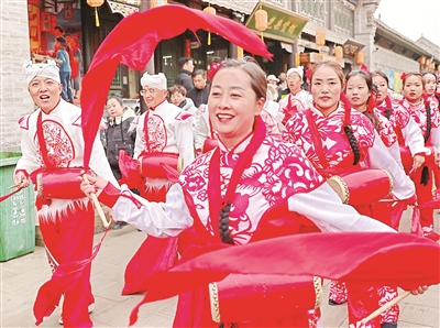 為迎接元宵佳節(jié),位于山西省太原市晉源區(qū)的太原古縣城開展系列節(jié)慶活動。據(jù)了解,該景區(qū)推出“賣貨郎”“旱船”等非遺巡演、《祥鳳飛天》威亞表演、“唐潮F4”對詩互動等特色活動,搭配NPC巡游、“福祿壽喜財(cái)”五??扉W等互動環(huán)節(jié),讓市民和游客度過一個有溫度、有文化的元宵佳節(jié)。圖為活動現(xiàn)場。曹建雄 攝