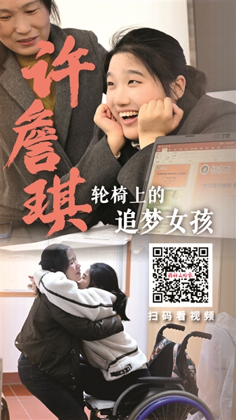 求學(xué)路上,許詹琪得到了許多幫助。學(xué)校得知她的特殊情況后,第一時(shí)間把她調(diào)整到一樓無(wú)障礙宿舍,并修建了無(wú)障礙坡道,把她的課程盡量安排在一樓的教室;老師和輔導(dǎo)員時(shí)常關(guān)照;同學(xué)們更是組建了幫扶小組,輪流陪伴照料。