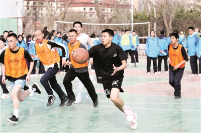 今年新學(xué)期開學(xué)以來,甘肅省平?jīng)鍪械谖逯袑W(xué)堅(jiān)持“健康第一”教育理念,積極探索構(gòu)建“體育課+大課間+課外鍛煉”機(jī)制,通過開展校園“班超”陽光體育運(yùn)動(dòng)推行學(xué)生體質(zhì)強(qiáng)健行動(dòng),確保學(xué)生每天綜合體育活動(dòng)時(shí)間不低于2小時(shí),讓學(xué)生在體育競(jìng)技中感受運(yùn)動(dòng)的歡樂。圖為3月23日,學(xué)生參加籃球比賽。
