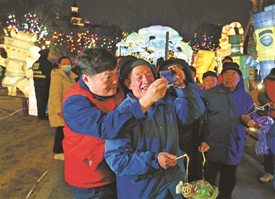 魯鵬帶領(lǐng)德陽(yáng)市雙東鎮(zhèn)敬老院的老人到德陽(yáng)玄珠湖公園看燈會(huì)。馬健 攝