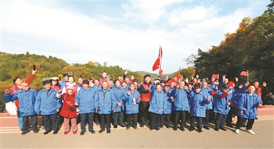 魯鵬和國(guó)家電網(wǎng)四川電力(德陽(yáng))連心橋共產(chǎn)黨員服務(wù)隊(duì)隊(duì)員以及志愿者帶領(lǐng)雙東敬老院的老人到德陽(yáng)市東湖山公園游覽。  鐘飛 攝