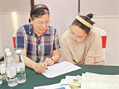 王玲(左)正為考生做志愿指導(dǎo)。呂歡歡 攝