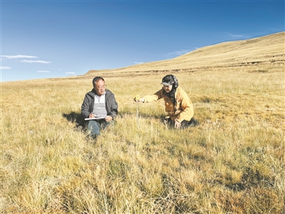 第五屆玉樹好人敬業(yè)奉獻模范布久·索南更青(左)。